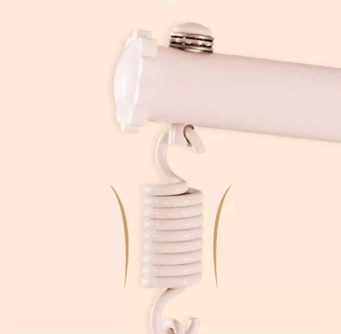 Freestanding hanging system — no ceiling mount required for easy placement and relocation.