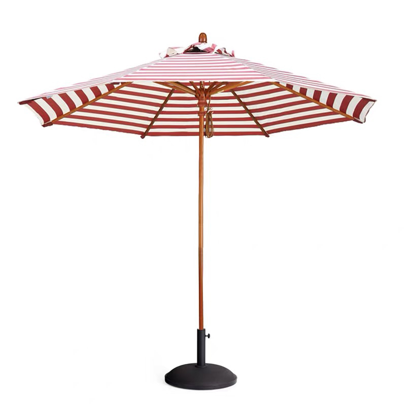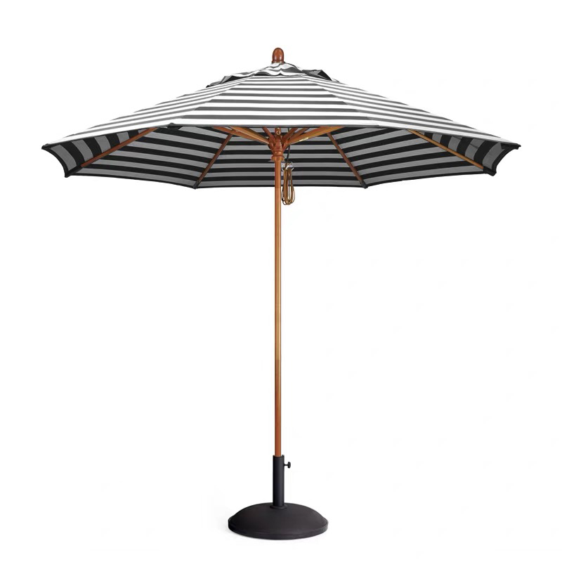 Featuring a classic middle pole umbrella design, the black and white striped umbrella is simple to set up and anchor, making it perfect for both permanent and temporary outdoor seating arrangements. The stripe patio umbrellas and striped garden parasol variants are equally suited for commercial and residential applications, adding a refined, Instagram-worthy look while providing functional shade. Lightweight yet sturdy, the umbrella’s corrosion-resistant aluminum or powder-coated steel frame ensures longevity in urban and outdoor environments. Smooth crank or push-button opening mechanisms allow café staff to operate the umbrella efficiently, while optional valances or customization options make it possible to match branding, logos, or seasonal themes.