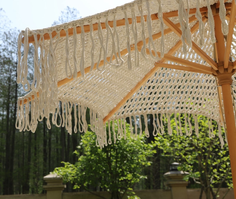 Product Name Outdoor Wood Umbrella (Boho White Macrame Outdoor Umbrella Bali Style)