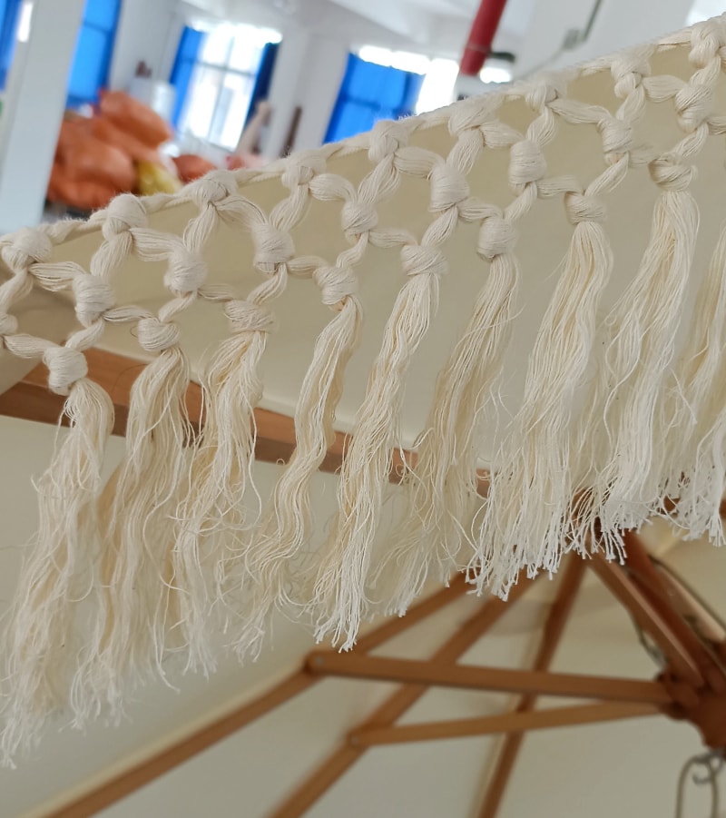 Boho White Macrame Outdoor Umbrella: 2.5M ideal for hotels/villas/beaches