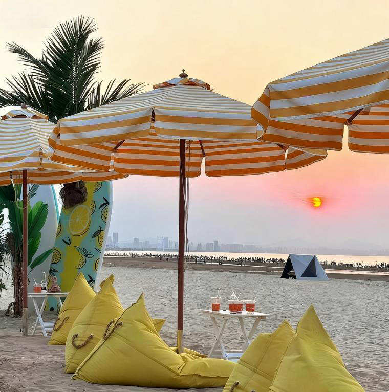 The market umbrella with fringe combines practical sun protection with playful, vintage-inspired aesthetics, perfect for outdoor markets, artisan fairs, and creative event spaces. Designed to attract attention while providing functional shade, this umbrella features a scalloped canopy edge trimmed with soft, durable fringe that moves gently in the breeze. Crafted from solution-dyed acrylic or high-denier coated polyester, the canopy resists UV fading, repels light rain, and maintains its vibrant color over repeated use. Reinforced rib pockets and double-stitched hems ensure the canopy remains taut and stable throughout the day.