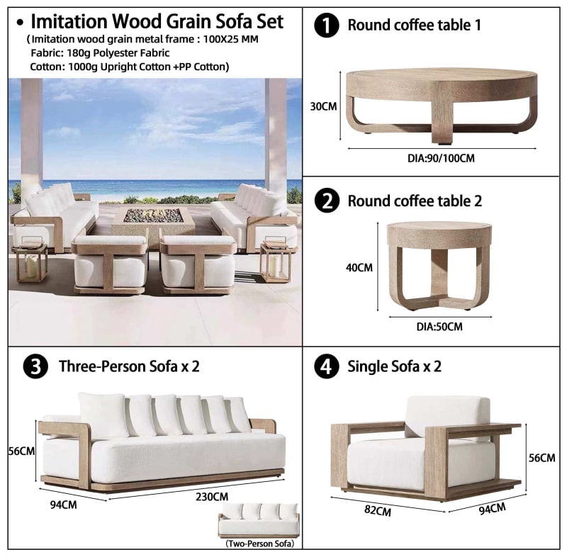 Crafted with high-quality teak wood frame and plush, supportive cushions, this outdoor sofa set replicates RH’s timeless design, blending natural elegance with outdoor durability. it fits perfectly in most patios, backyards, or poolside areas, while offering multi-color customization to match your decor style.