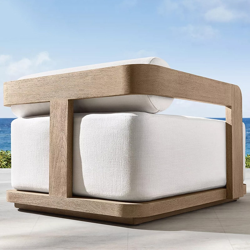 | Core Advantages | 1. RH-inspired minimalist luxury design fits high-end outdoor aesthetics; 2. Teak frame develops elegant silver patina over time; 3. Cushions with water-repellent fabric; 4. Ergonomic seat depth for long-hour relaxation |