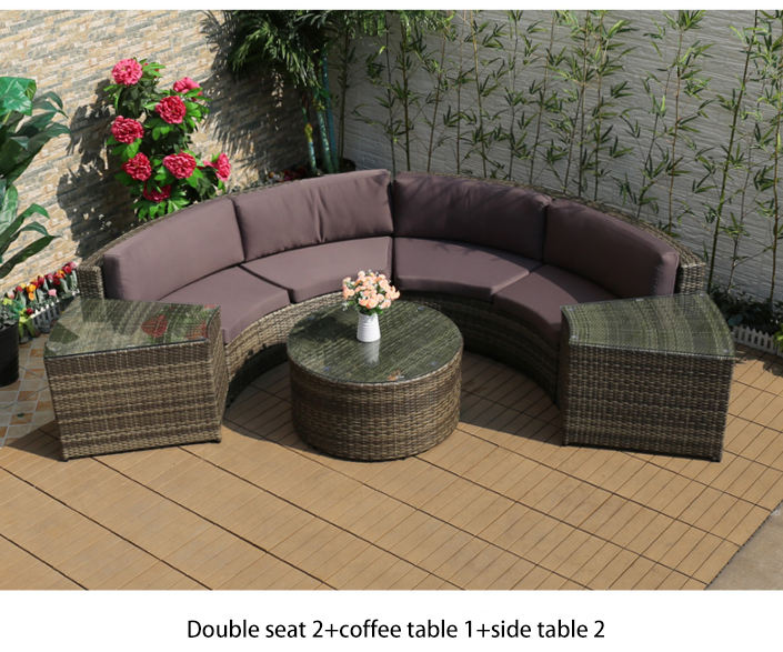 Introducing our Round Rattan Sofa, a modular outdoor furniture piece crafted from high-density UV-resistant PE rattan and a rust-proof aluminum frame. Designed for flexible combinations—form full circles, semi-circles, or linear layouts—this sofa suits villa gardens, hotel patios, apartment balconies, and more. The waterproof polyester cushions and weatherproof rattan ensure all-weather durability, while the lightweight modular design allows easy rearrangement. Whether for family gatherings, poolside lounging, or cozy balcony retreats, this round rattan sofa blends modern style with practical functionality, making it a standout choice for any outdoor space.